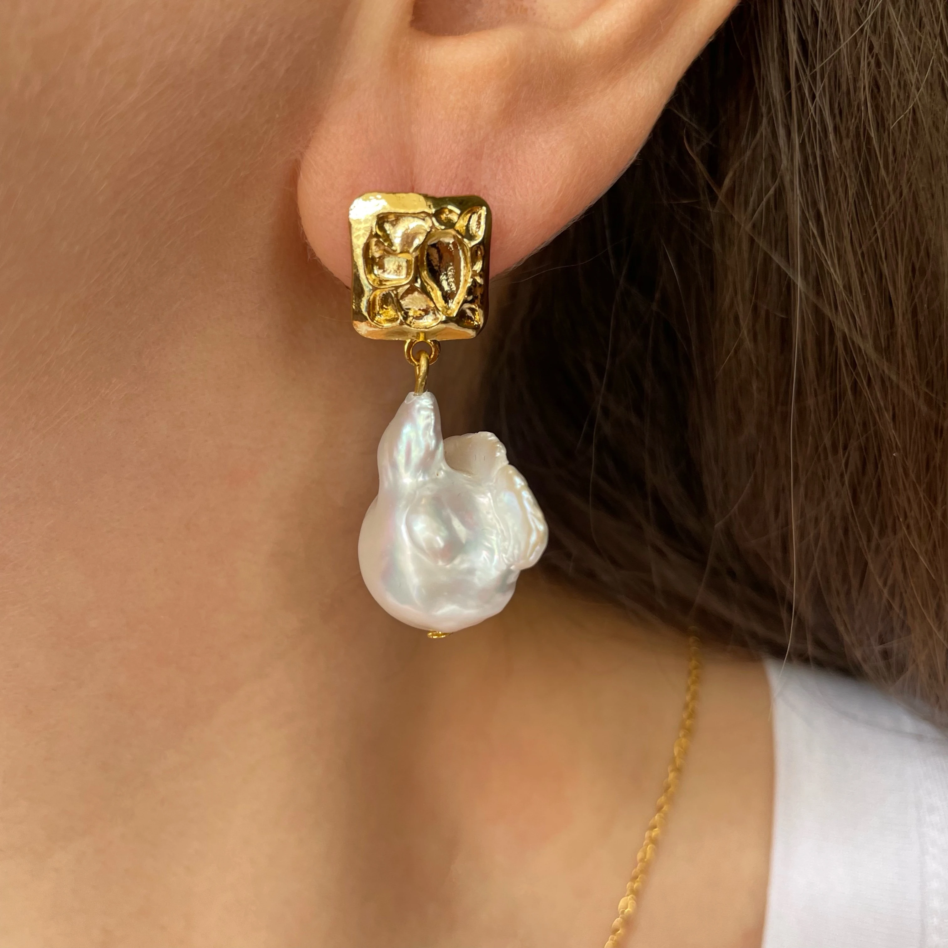 Gerçek İnci ve Zincir Detaylı Kıkırdak Küpe (Altın)